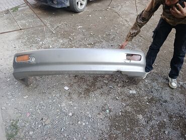Задний бампер для легкового автомобиля, серебристый (металлик).