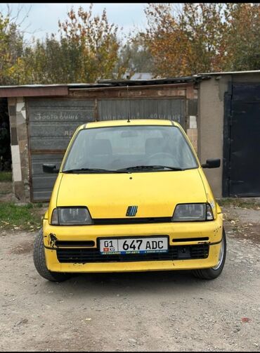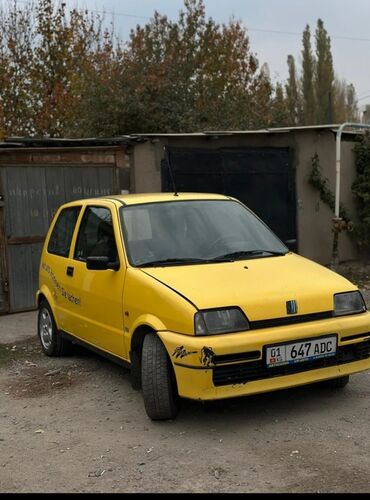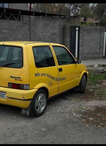 Компактный городской хэтчбек Fiat Cinquecento sporting, ярко‑жёлтый цвет кузова, 3 двери. сиденья полуковши