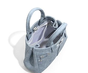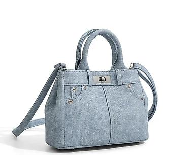 - Фурнитура: металлизированный поворотный замок, декоративные заклёпки в стиле джинсовых карманов.