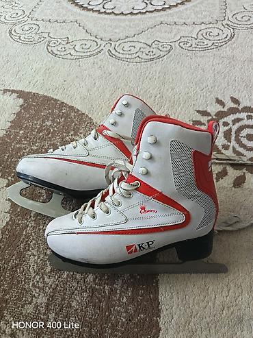 Коньки классические, белые. 37-38 размер - Модель: женские/подростковые, высокие ботинки на шнуровке - Материал верха: синтетическая кожа с декоративной строчкой и принтом на пятке - Подошва/каблу...