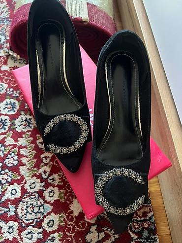 Черные туфли на небольшом каблуке, надевала один раз, в отличном состоянии. Замшевые, 38 размер идут размер в размер