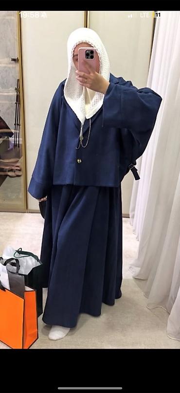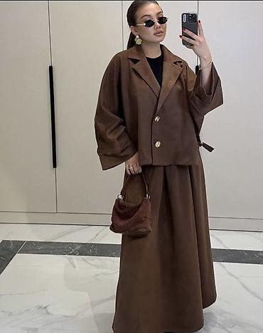 Комплект женской одежды в стиле modest fashion: объемный жакет + длинная расклешённая юбка.