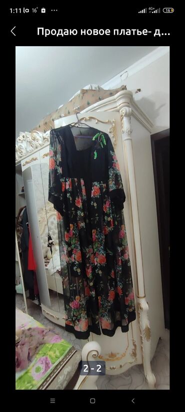 - Модель: длинное черное платье с накидкой/верхним слоем из полупрозрачного шифона.