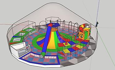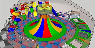 - Возможна зональность: активная зона, батутная, лабиринт, зона малышей.