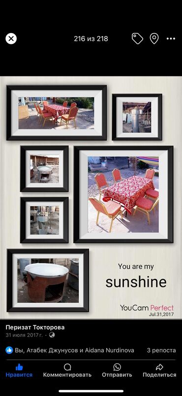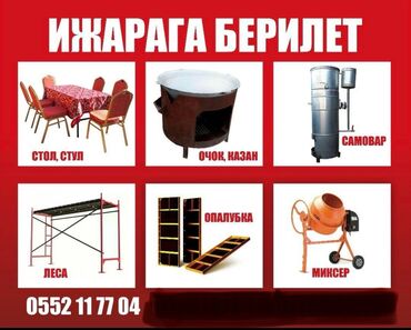 Сиздин майрамыңызга керектүү стол жана стулдар бизде!! Той, маараке, туулган күн же башка иш-чаралар үчүн ыңгайлуу, таза жана сапаттуу стол-стулдарды ижарага сунуштайбыз. Жеткирип берүү жана кайра ...