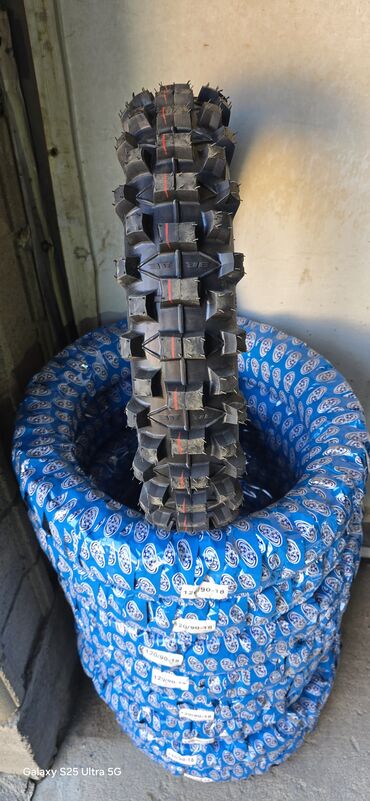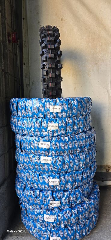 Мотошина эндуро/кросс 120/90‑18 - Назначение: задняя покрышка для эндуро, кросс и хард‑эндуро. - Размер: 120/90‑18 (видно на заводских ярлыках). - Протектор: агрессивные высокие шашки с выражённым...