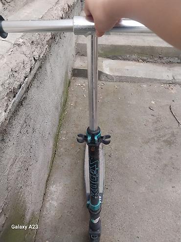 Городской самокат с амортизацией и ручным тормозом.Хорошем состоянии выдерживает 100кг - Складная конструкция: компактно складывается для переноски и хранения. - Колеса большого диаметра (переднее...