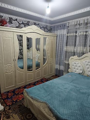 - Шкаф-купе/распашной на 6 дверей: три центральные двери с большими зеркалами, боковые — глухие. Фасады с фигурной фрезеровкой, декоративный карниз.