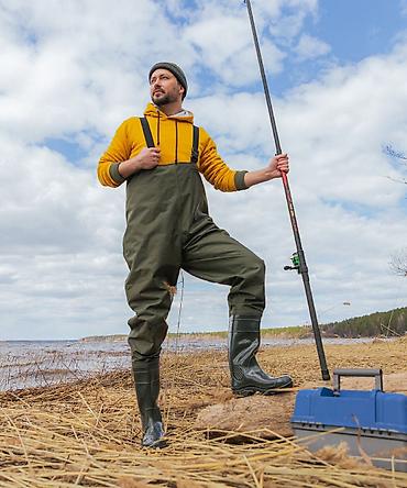 - Сапоги: высокие, с рельефной противоскользящей подошвой, обеспечивают сцепление на влажных камнях и в иле.
