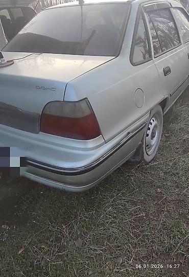 Daewoo Nexia седан, серебристый цвет, бензиновый двигатель DOHC. Кузов 4‑дверный, классический седан с просторным багажником.