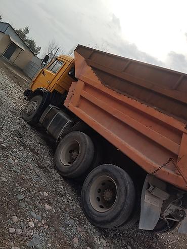 Самосвал KAMAZ, трехосный (6x4), оранжевый кузов с высокими бортами.