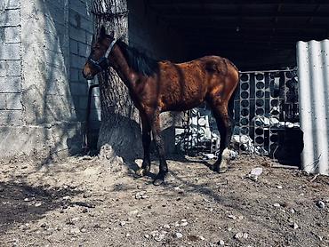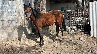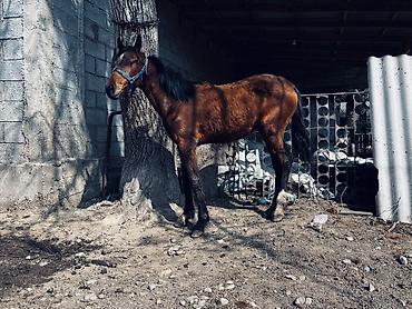 Сатыка полукровка тай 7 ай Буту кол таза денсоолугу нор!.Атасы Улака сатылган Коктейль,энеси Белка байгеде ,алуучуга нак,Кеми бар баасы 150мин .Продается домашняя лошадь гнедой масти с темной гривой и хвостом. Лошадь среднего размера, имеет атлетическое телосложение. На голове виден синий недоуздок. Животное обладает короткой шерстью, выразительными темными глазами и крепкими конечностями. Может использоваться для верховой езды или сельскохозяйственных работ.