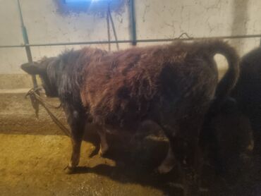 Молодая телочка черной масти с небольшими рогами. Возраст ориентировочно 8–14 месяцев (по габаритам и рогам). Среднего телосложения, длинноногая, активная. Подходит для дальнейшего откорма или форм...