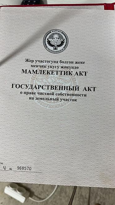 Государственный акт о праве частной собственности на земельный участок (Кыргызская Республика). Обл.Исык Куль,Тонский район, близ Каджи Сая рядом Узбексий пансионат Боорсан От берега 300-400метров