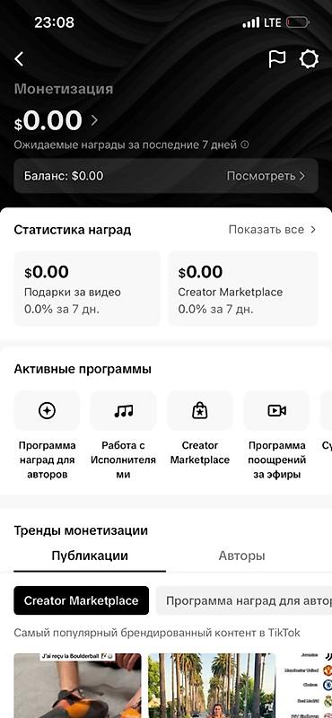 - Текущие показатели монетизации в интерфейсе — $0.00 за последние 7 дней (баланс $0.00)