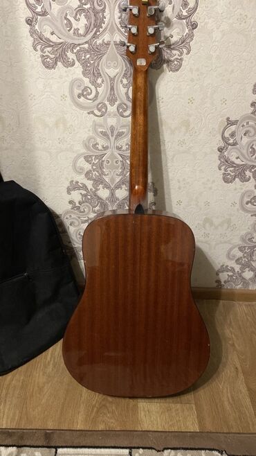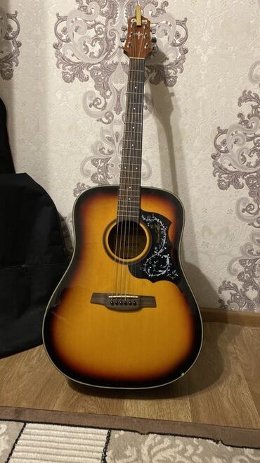 - Корпус: форма дредноут, верх с санбёрст-окрасом; декорированная гитарная накладка (пикгард) с орнаментом.