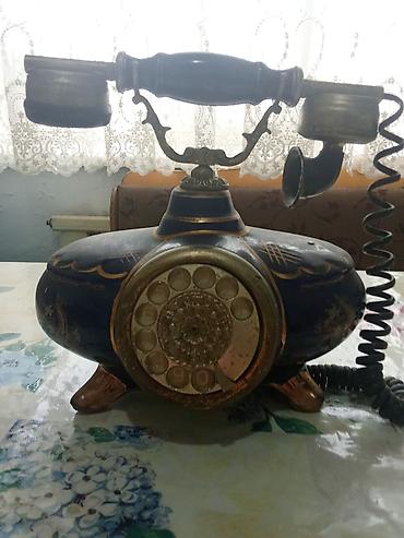 Антикварный дисковый телефон с ручкой-трубкой в стиле ретро.
