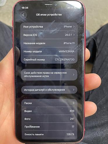 IPhone 11, 128 ГБ, цвет Product(RED) АКБ 82%. В Идеале Характеристики: - Память: 128 ГБ (на экране «Об этом устройстве») - Версия iOS: 16.1 (отображается в настройках) - Модель: iPhone 11 (номер ...