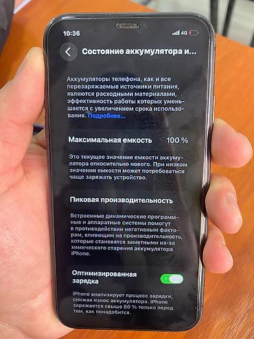 - Аккумулятор: в разделе «Состояние аккумулятора» отображается максимальная емкость 100%, включена оптимизированная зарядка.