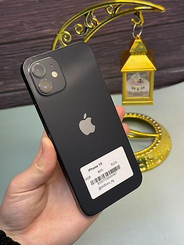 IPhone 12, Б/у, 64 ГБ, Черный, Зарядное устройство, Защитное стекло, Чехол, В рассрочку, 84 %