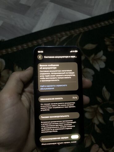 - В разделе «Состояние аккумулятора» отображается максимальная ёмкость 73%, включена «Оптимизированная зарядка»