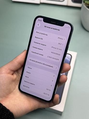 IPhone 12 mini, Б/у, 64 ГБ, Черный, Зарядное устройство, Защитное стекло, Чехол, В рассрочку, 78 %