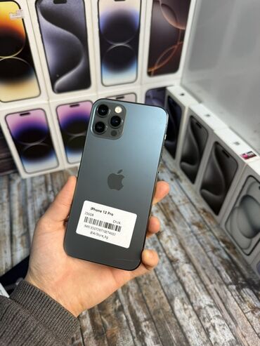 Комплектация и дополнительные аксессуары на фото не указаны. Цвета на снимках: графитовый и серебристый. На корпусе наклейка с пометкой «iPhone 12 Pro 256GB».