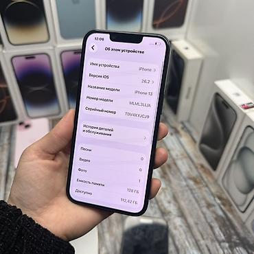 IPhone 13, Б/у, 128 ГБ, Midnight, Чехол, Защитное стекло, Зарядное устройство, В рассрочку, 99 %
