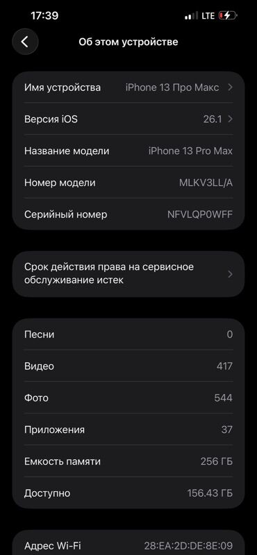 - Память: 256 ГБ, доступно около 156.43 ГБ (по скриншоту)