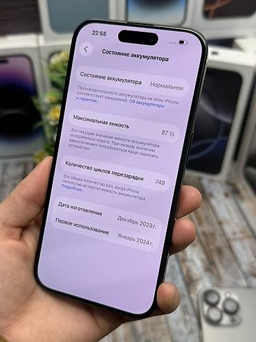 IPhone 15 Pro, Б/у, 128 ГБ, Black Titanium, Коробка, В рассрочку, 87 %