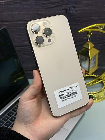 IPhone 16 Pro Max, Б/у, 256 ГБ, Золотой, Зарядное устройство, Кабель, Чехол, В рассрочку, 100 %