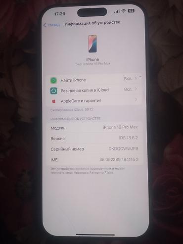 - Модель: iPhone 16 Pro Max (указано в настройках)