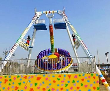 Аттракцион «Пиратский корабль» представляет собой маятниковую конструкцию, имитирующую раскачивание пиратского судна. В одном варианте представлен красочный аттракцион с центральной вращающейся платформой и двумя маятниковыми раскачивающимися частями по бокам, в другом — классическая форма корабля. Конструкция включает сиденья для пассажиров, обеспечивающие безопасное и захватывающее катание. Подходит для установки в парках развлечений, на ярмарках и в других местах массового отдыха. Яркий дизайн и динамичное движение делают его привлекательным для посетителей всех возрастов.