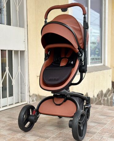 Детская коляска. Цена 8000 сом - Универсальная коляска 2-в-1: шасси с крупными проходимыми колёсами, корзина для покупок, регулируемая ручка с кожаной накладкой, капюшон бежевого цвета. В комплект...Вход•Регистрация