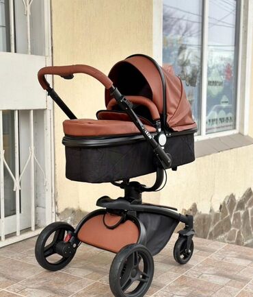 Детская коляска. Цена 8000 сом - Универсальная коляска 2-в-1: шасси с крупными проходимыми колёсами, корзина для покупок, регулируемая ручка с кожаной накладкой, капюшон бежевого цвета. В комплект...