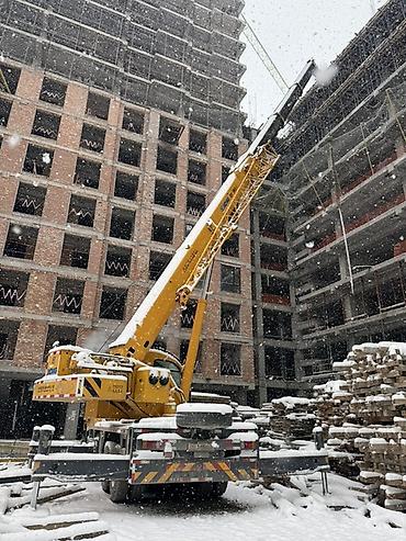 - Подъём и перемещение строительных грузов на объектах любой сложности: монолит, монтаж плит/балок, металлоконструкций, погрузо‑разгрузочные работы.