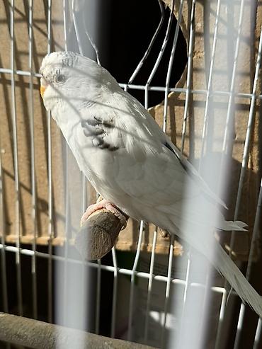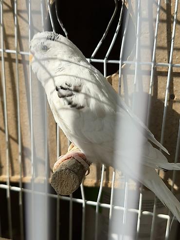 Волнистый попугай (окрас: белый с серыми/черными отметинами на голове