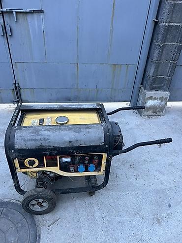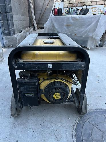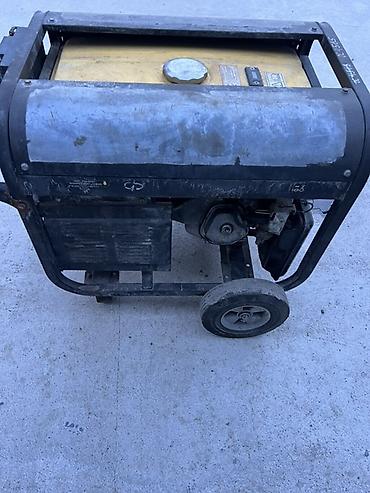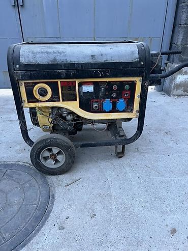 Бензиновый электрогенератор на раме с колесами и ручками для