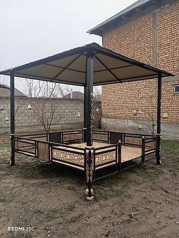 Тапчан сатылат.Уличная беседка-тахта (айван) с крышей и резным кованым каркасом Чачылып чогулатурган тапчан - Габариты: ориентировочно 2,5–3 м в длину и 2–2,5 м в ширину