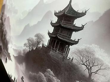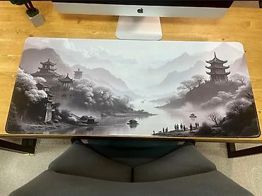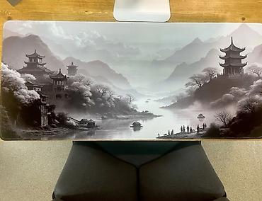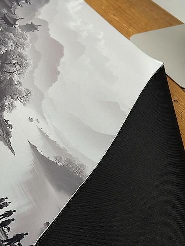 - Верхний слой: гладкая ткань с детализированным монохромным пейзажем (горы, пагоды, река). Подходит для точного трекинга оптических и лазерных мышей.