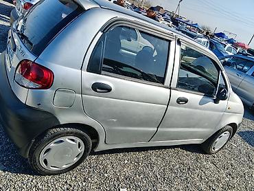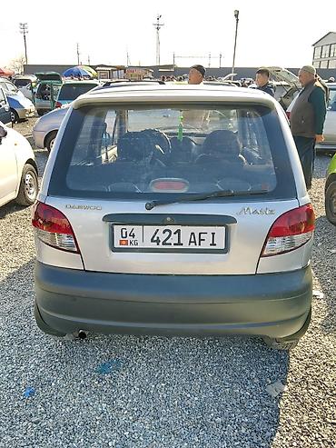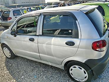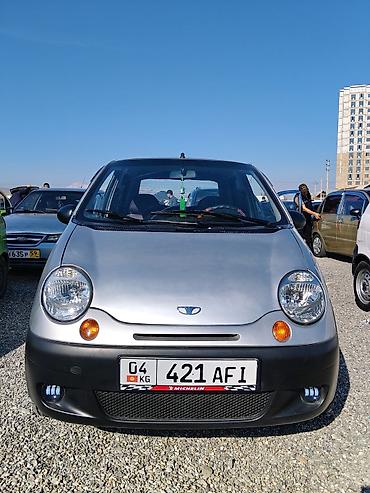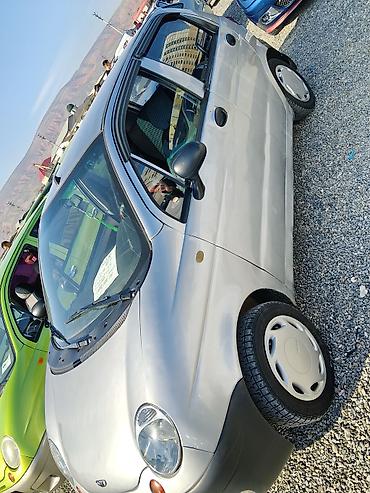 Daewoo Matiz, хэтчбек 5‑дверный, серебристый цвет кузова с черными бамперами. Компактный городской автомобиль с экономичным бензиновым двигателем и передним приводом.