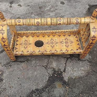 - Ручная роспись с орнаментом по всей поверхности, фигурные боковины и точёные элементы.