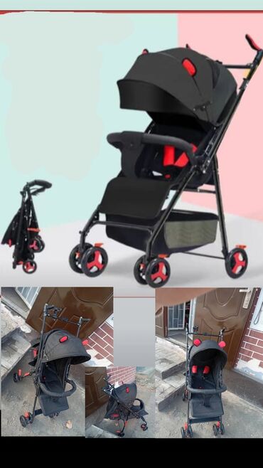 Легкая прогулочная коляска-трость - Компактная складывающаяся рама, удобна для переноски и хранения. - Поворотные передние колеса для маневренности, задние — с тормозом. - Пятиточечные ремни безоп...