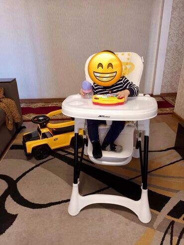 Детский стульчик для кормления - Комфортное сиденье с мягкой вставкой и ярким принтом, высокая спинка. Откидывается в лежачее положение - Съемный большой столик - Прочная металлическая рама на ус...