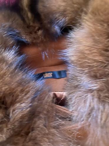 - Объёмный меховой воротник натурального вида тёплого коричневого оттенка.