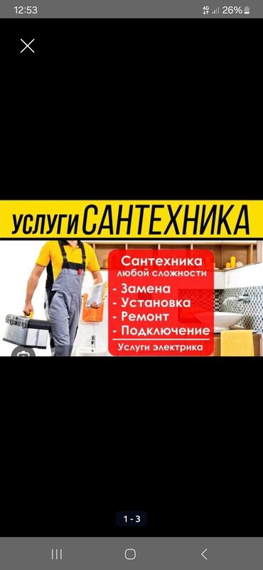 Сантехник и электрик в Бишкеке. Услуги: - Сантехника: монтаж и замена унитазов, раковин, смесителей; установка и подключение стиральных/посудомоечных машин; устранение протечек; прочистка засоров;...