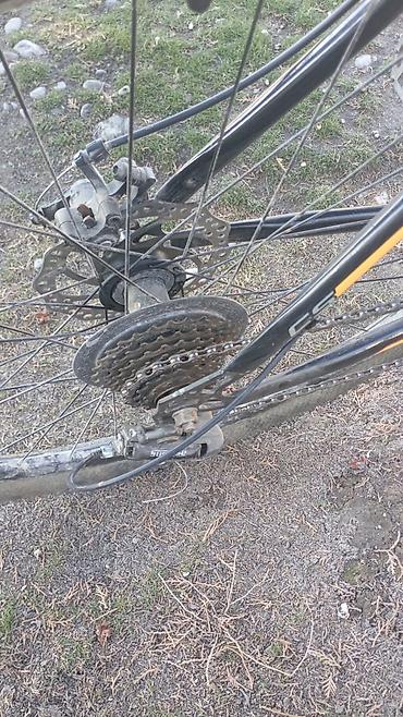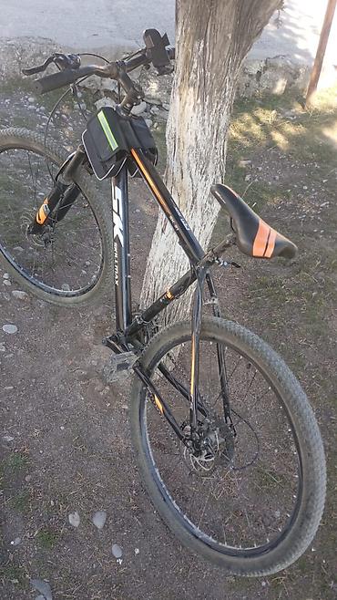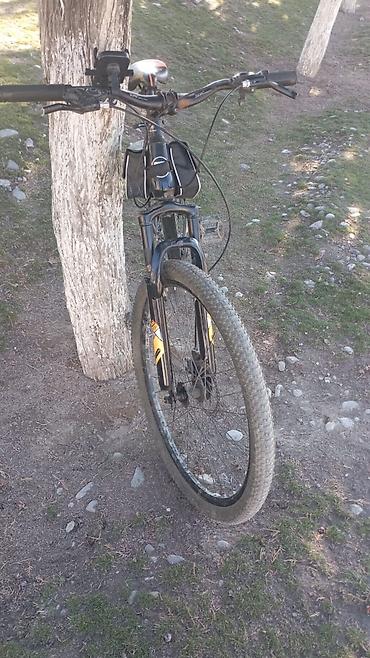 Подходит для катания по городским дорогам и легкому бездорожью. Цвет: черный с оранжевыми и белыми элементами. Места под флягодержатель на раме.