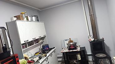 - Кухня: мойка, рабочие поверхности, шкафы для посуды, электрическая/индукционная плита, духовой шкаф, твердотопливная печь с дымоходом.