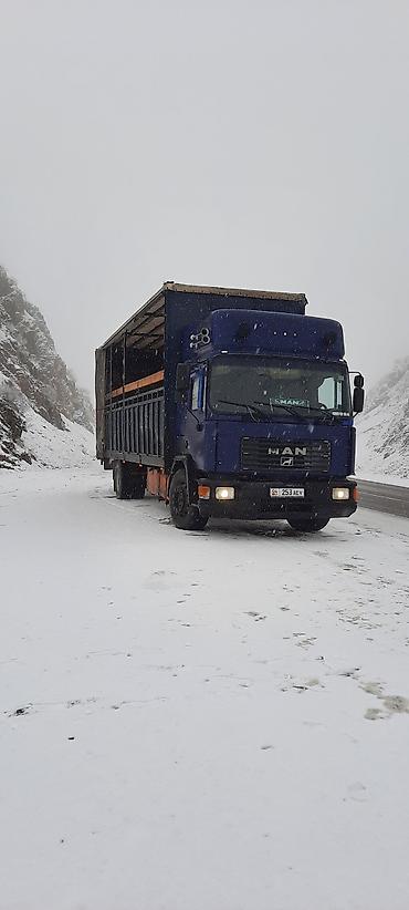 MAN 19.272 Commander — тентованный грузовик - Марка/модель: MAN 19.272 (серия Commander) - Кабина: широкая, с ветровиком и солнцезащитным козырьком - Кузов: тентованный (штора), синие боковины, кр...