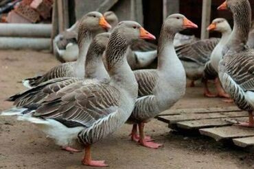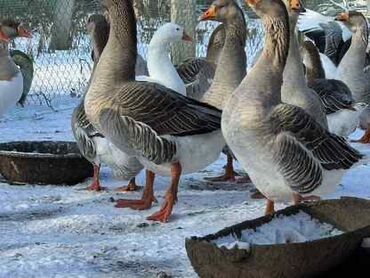 Гуси домашние, стадо. - Породы: преимущественно белые (вероятно Линда/белые крупные), в стаде есть несколько серых особей. - Количество: группа из примерно 10–12 голов, среди них есть самцы и самк...
